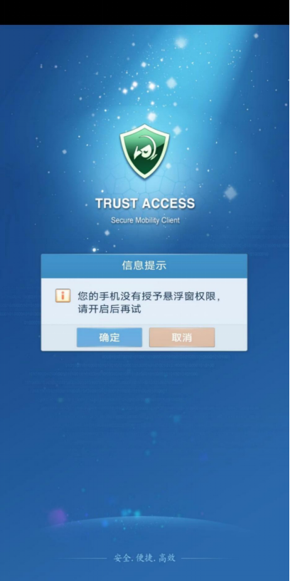 首次打开TRUST ACCESS图标,提示授予悬浮权限,点击确定
