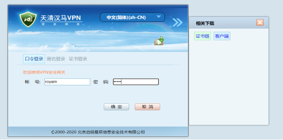 输入用户名密码登录后,就可以正常使用VPN了。