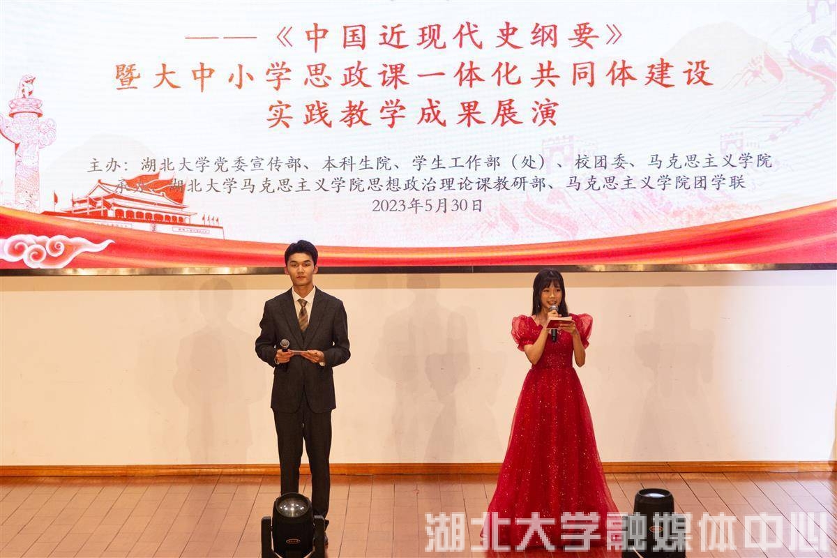 湖北日报讯(通讯员牟梓苓霄、魏雨松)5月30日,beats365唯一官方网站举行《中国近现代史纲要》暨大中小学思政课一体化共同体建设实践教学成果展演。展演活动有情景剧、剪纸、说唱等近10种形式,以2022级学生为主体,让学生们在教学实践活动中增强历史代入感、强国责任感、复兴使命感。