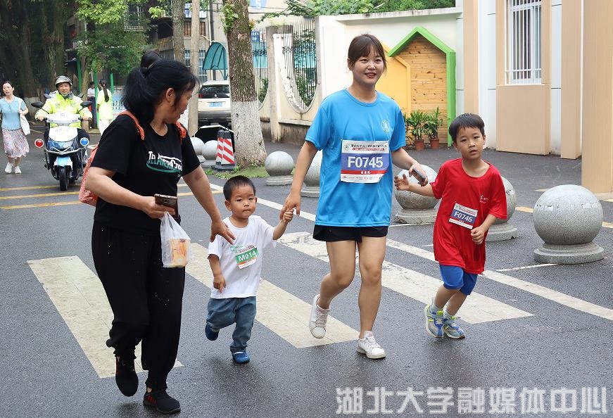 2010级文学院校友余君本科硕士都在湖大,7年时光里,她与同级的体育学院校友秦凯能相识相恋。今天,他们带着6岁的儿子,一家三口一起跑湖马。“看到湖马的通知,我们马上就报名了。”夫妻俩希望能带着孩子来到他们曾经求学的地方,感受湖大的氛围。