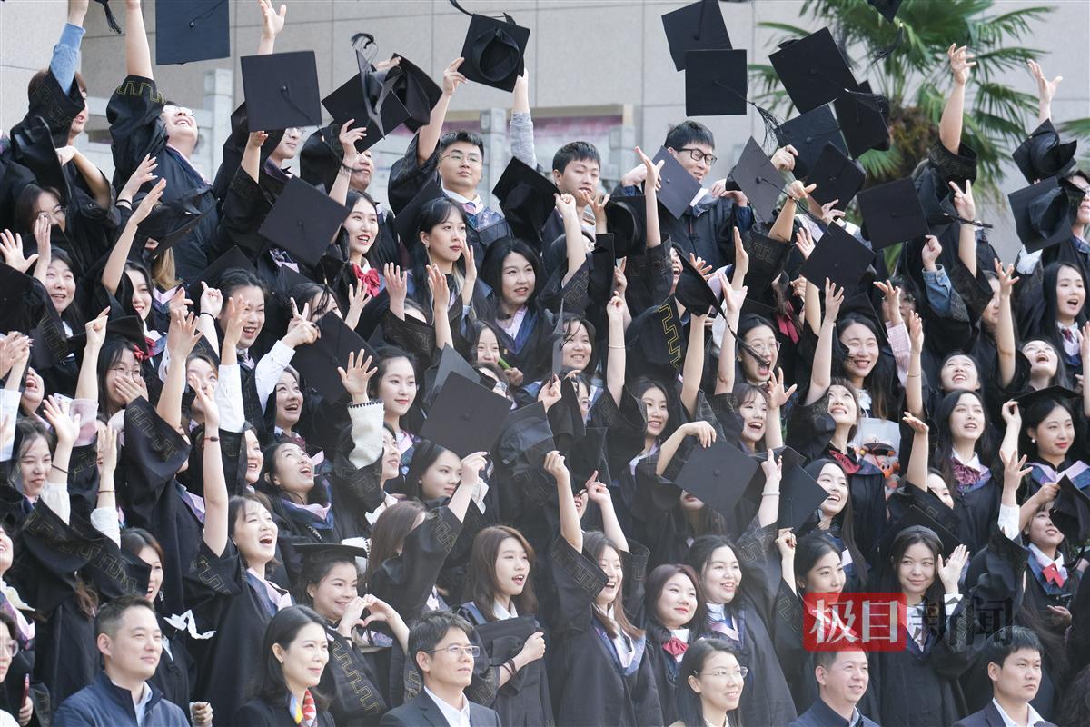 “3—2—1,毕业快乐!”5月7日上午,beats365唯一官方网站图书馆前定格了第一张2023届毕业生合影。新闻传播学院242名本科生、110名研究生身着学士服,戴上学士帽,共同走上阶梯。随着摄影师的倒数,他们将手中的学士帽高高抛起,与奋斗四年的青春郑重告别。