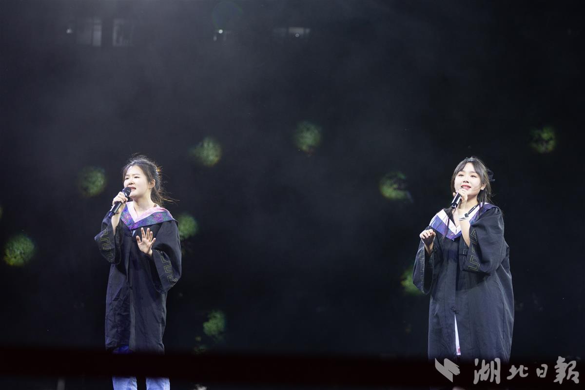湖大新闻传播学院2023届毕业生马凤演唱《我的美丽》后,深情地对现场观众说:“在我求学、成长的路上,这首歌带给了我很多力量。今天,我希望把这些力量也送给台下的你们!”