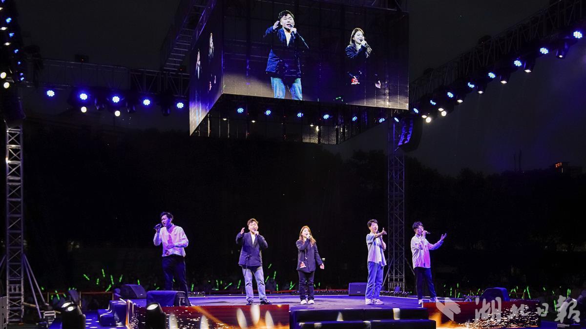 歌会上,《篇章》《bang bang》《克卜勒》《知足》《喜欢你》等歌曲,一次次点燃全场气氛。其间,整个操场亮起荧光棒,仿佛一片晃动的星河;一些学子们熟悉的歌曲,频频带动全场大合唱。