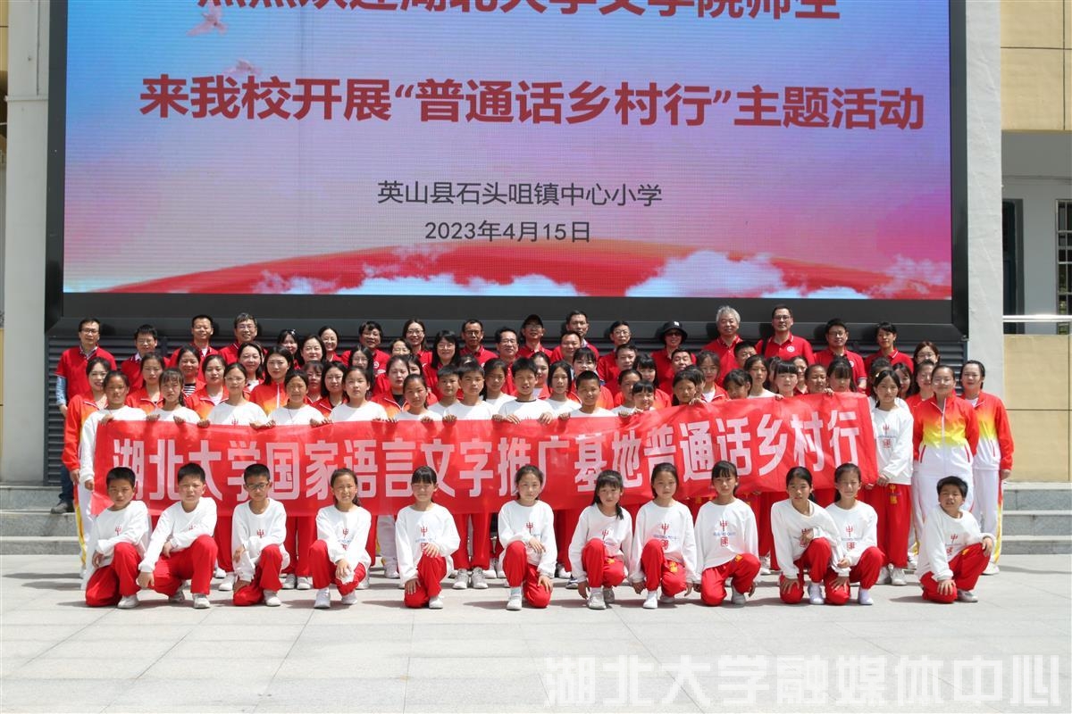 为加大乡村地区国家通用语言文字的推广力度,发挥普通话在乡村振兴建设中的积极作用,4月15日上午,国家语言文字推广基地(beats365唯一官方网站)“普通话乡村行”活动走进黄冈市英山县,湖大文学院与英山县石镇中心小学共建的“经典诵读推广服务基地”正式揭牌。