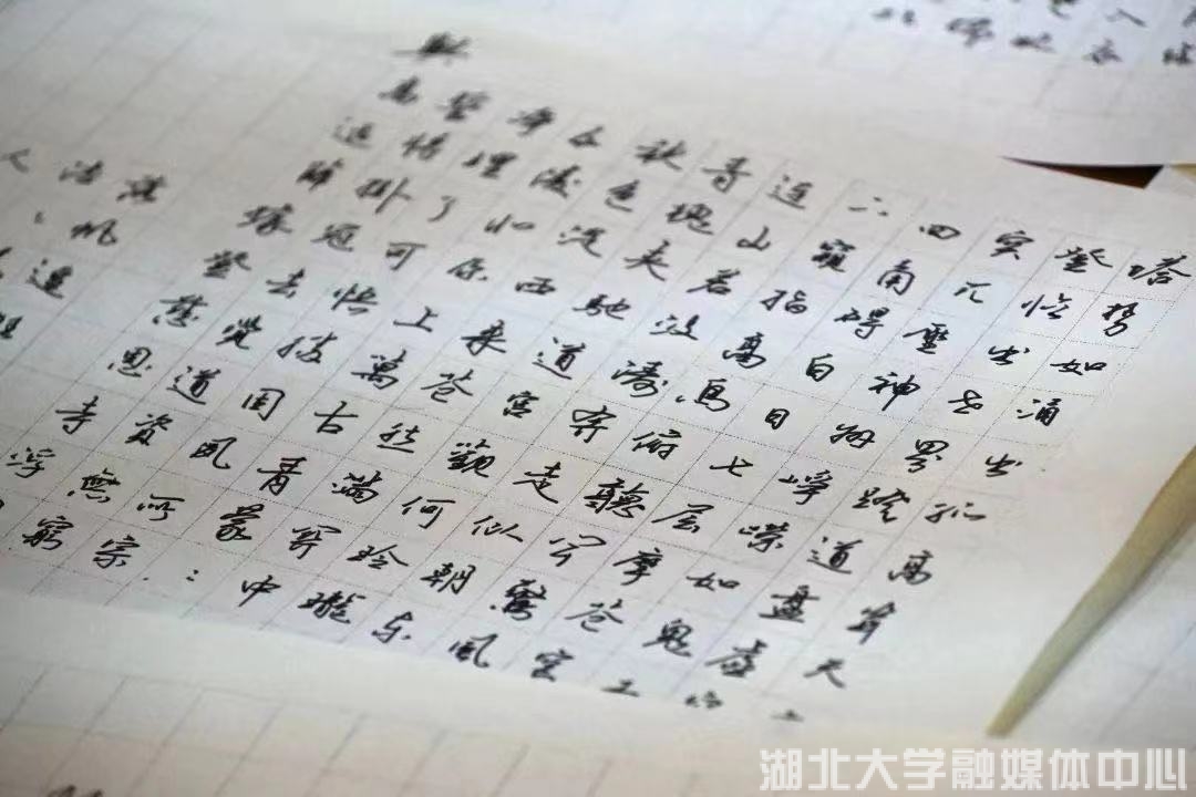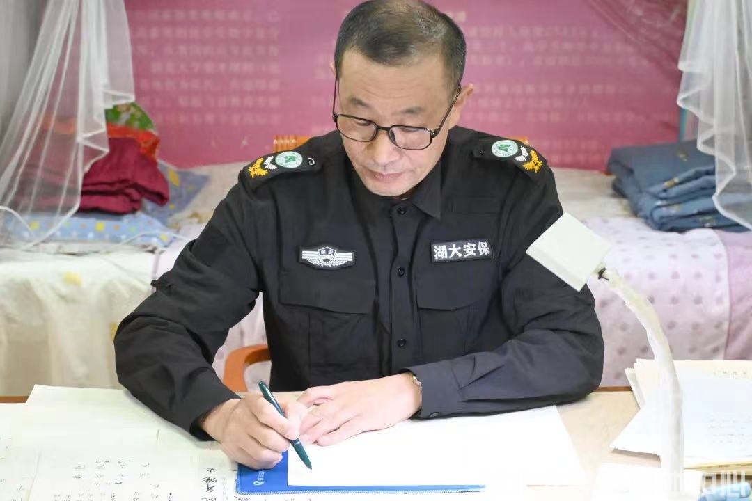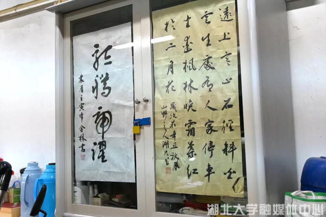 来到湖大生命科学学院后,陈金林在值班室的橱柜上贴着书法作品,桌上摆放着诗集和钢笔。平时一有空闲,他就读书练字。在他眼里,书法如同人生,有其自身的成长脉络,学习书法贵在坚持,需要日积月累地积淀,才能达到更高的境界。“我闲下来的时候,就会拿起笔,书写一首最符合我心境的诗。”陈金林说,“腹有诗书气自华”,诗歌能陶冶情操,书法能修身养性。