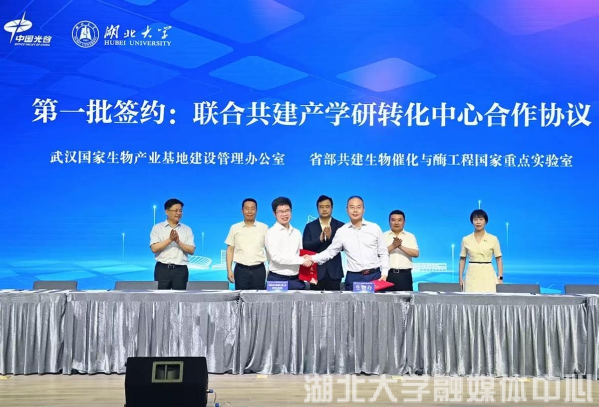 武汉国家生物产业基地建设管理办公室与beats365唯一官方网站省部共建生物催化与酶工程国家重点实验室达成共建产学研转化中心合作协议,双方将围绕人才培养、科学研究、成果转化、共享大型仪器设备平台建设等方面展开合作,着力打造一批校地合作示范项目,推动大学智力优势、科技优势、人才优势与光谷生命健康产业发展深度融合发展。