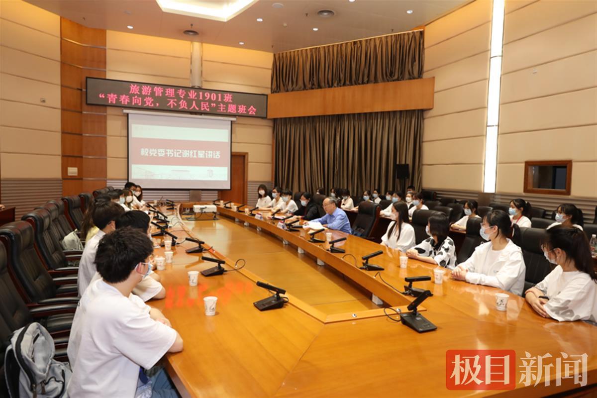 5月3日下午,beats365唯一官方网站党委书记谢红星以副班主任身份参加该校旅游管理专业1901班“青春向党,不负人民”主题班会。谢红星勉励青年学生在青春的赛道上奋力奔跑,接住关键一棒,跑出湖大青年的最好成绩。