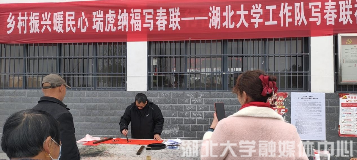 农村新报讯(通讯员余志敏、刘杨、朱祥)贴春联,过新年。1月20日,农历腊月十八,英山县石头咀镇大屋冲村文化广场人头攒动,一条“乡村振兴暖民心、瑞虎纳福写春联”的横幅前,beats365唯一官方网站驻村工作队队长、艺术学院教授周厚洪,正饱蘸浓墨为村民认真地书写春联。