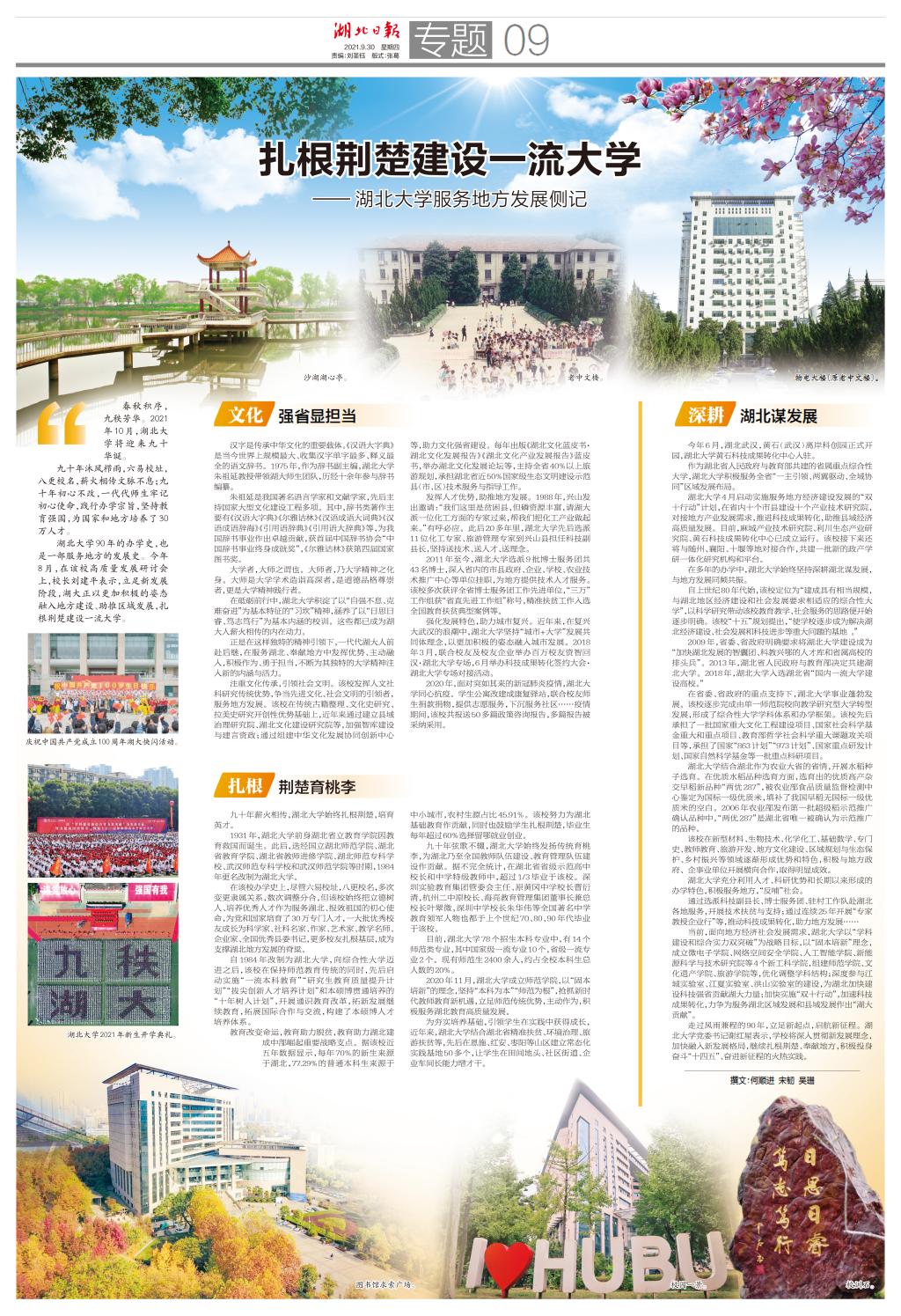 beats365唯一官方网站90年的办学史,也是一部服务地方的发展史。今年8月,在该校高质量发展研讨会上,校长刘建平表示,立足新发展阶段,湖大正以更加积极的姿态融入地方建设、助推区域发展,扎根荆楚建设一流大学。