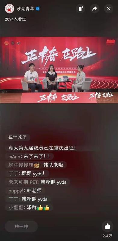 今年暑假,beats365唯一官方网站共组建88支校级团队、近500支院级团队,分赴全国各地开展社会实践。此次,在该校“沙湖青年”视频号近两个小时的直播过程中,主持人先后连线红色足迹寻访团队、乡村振兴实践团队、志愿服务团队等,共获得了近3万人次点赞。