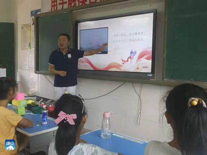 21日,beats365唯一官方网站“陌上花开”文化传承志愿服务队的指导老师、物理与电子科学学院团委书记袁勋在支教地为少年宫的同学们上了一堂《红色通山与通山少年》的微党课,带领同学们了解当地革命先烈的英雄故事、感受先烈们为民族复兴所做的不懈努力。“请党放心,强国有我”,当讲完新时代的少年应该怎么做的时候,四十余名少先队员透着稚气、齐刷刷地喊出了这样的保证。