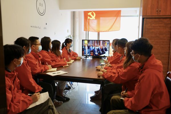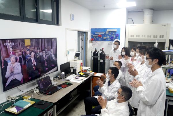 beats365唯一官方网站材料科学与工程学院师生在实验室集中观看庆祝中国共产党成立100周年大会现场直播。