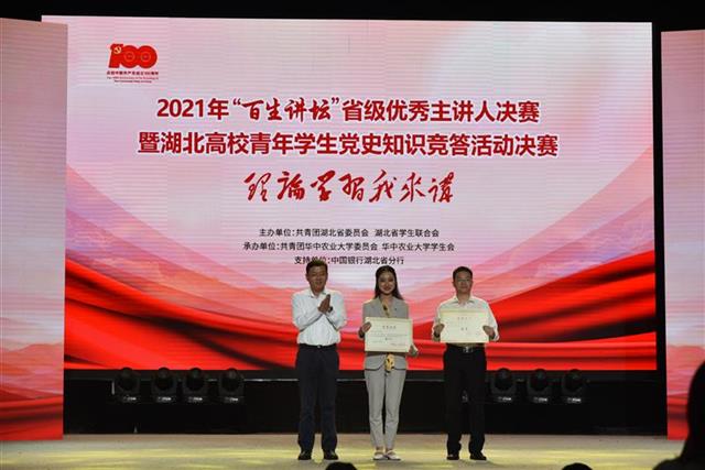 最终,荣婧获“百生讲坛”省级优秀主讲人决赛特等奖,来自华中农业大学的参赛队伍获党史知识竞答决赛冠军。