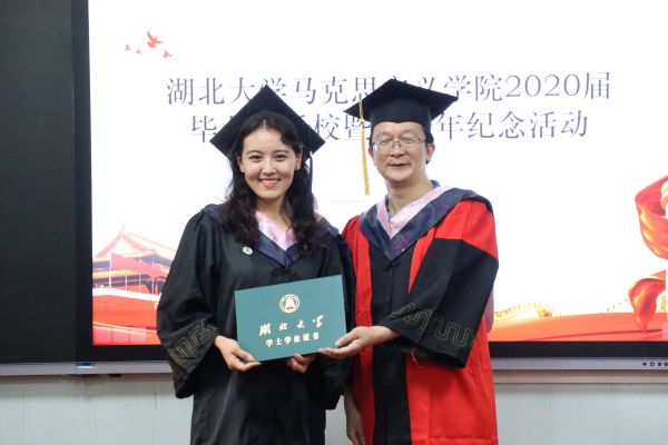 “集合去拍毕业照啦!”同学们身着精致的服装,手捧鲜花,毕业生们展露笑颜,定格青春。随后,伴随着毕业季的音乐,马克思主义学院院长熊友华专门为大家补上了毕业典礼最重要的一个环节——拨帽穗,“重新”授予学士学位证。“欢迎回家!这次的毕业典礼虽因疫情有所延迟,可马克思主义学院永远是学生的家,永远是学生的港湾。”熊友华说,希望无论再过多少年,5年、10年,随时欢迎同学们回家看看。