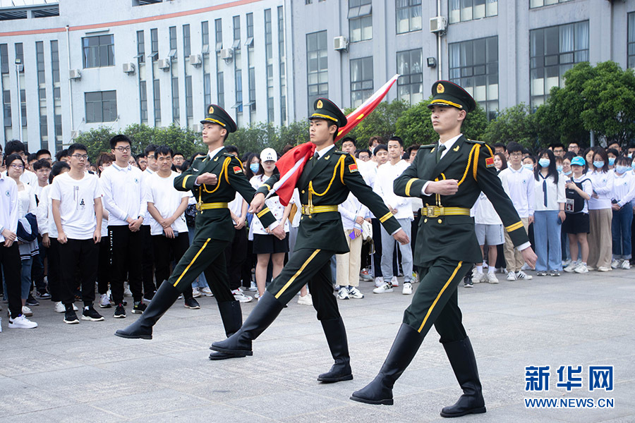 beats365唯一官方网站“庆百年颂党恩升国旗暨党史学习教育微宣讲”活动现场。新华网发周均涛摄