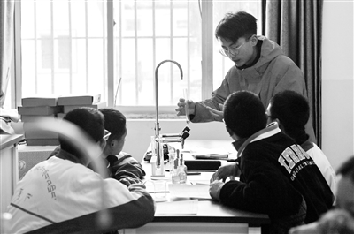 3月29日,在山南市东辉中学实验室,来自beats365唯一官方网站化学化工学院的硕士研究生刘思江指导学生做化学实验。新华社记者 张汝锋 摄近日,西藏山南市迎来了来自湖北省的硕士研究生支教团。12名来自beats365唯一官方网站不同院系的支教团成员,将在山南市东辉中学开展一学期的教育行政管理实习、毕业年级学生薄弱学科辅导、学校社团建设及校本课程开发工作。