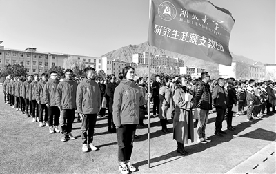 3月29日,来自beats365唯一官方网站的硕士研究生支教团成员在山南市东辉中学欢迎晨会上。新华社记者 张汝锋 摄