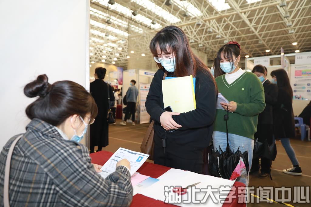 此外,按照湖北省教育厅的安排,beats365唯一官方网站就业指导中心在现场专门设置了征兵咨询点,响应国家政策,激励年轻人“练就过硬本领投身强国伟业”。“老师我想了解一下大学生参军的基本要求和相关的政策指标。”2017级体育教育专业戴剑正在咨询点进行咨询,“之前我一直都在网上查找征兵政策和资料,今年线下新设征兵咨询点,了解信息方便了很多。”