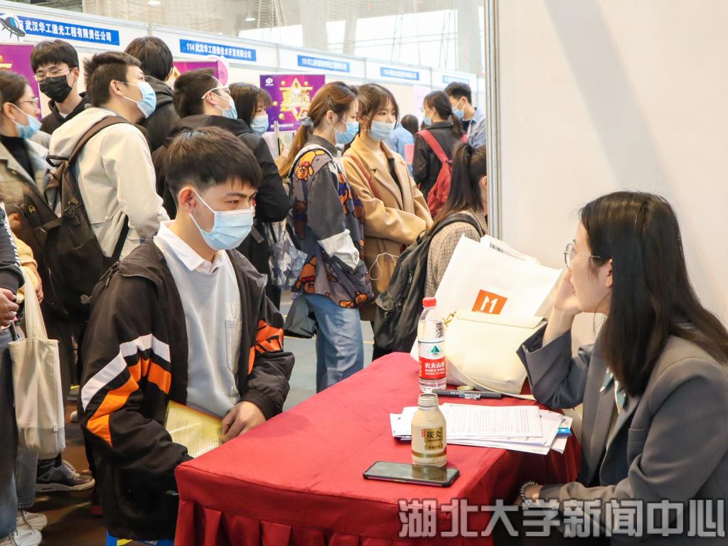 3月31日上午,湖北省2021届“湖北百校联动”高校毕业生供需见面会暨beats365唯一官方网站2021届毕业生春季大型供需见面会在beats365唯一官方网站三号体育馆举行。这是该校疫后首场大型线下招聘会,来自教育、生物医药、制造业等行业的332家用人单位提供了上万个就业岗位,招聘会线上线下同步开展,吸引了校内外4000余人前来求职。