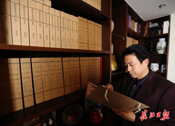 覃兆刿老师和他的“家庭档案库”。 记者何晓刚 摄