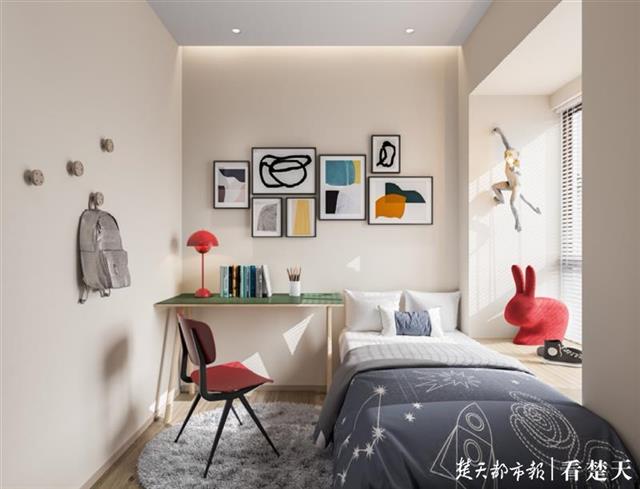 不仅如此,邓伊玲还在样板间装饰品的选择上大胆尝试,连用三幅马蒂斯的作品《雏菊》,并通过将每幅画中的一朵菊花改用不同的色彩,巧妙将其融入样板间的场景中,暗示着生活中多样的精彩与可以期许和发现的趣味。同时,她还引用了马蒂斯的另外一幅作品《FACE-MASK》,在空间中制造了如戏剧般的亮点与冲突。“恰到好处的装饰品可以增加生活的情趣和记忆点,更好地表达在此项目设计中思考者如野兽派初现时的探索精神、先锋性、实验性和面对未来生活的态度。”邓伊玲说。