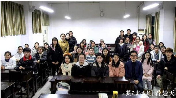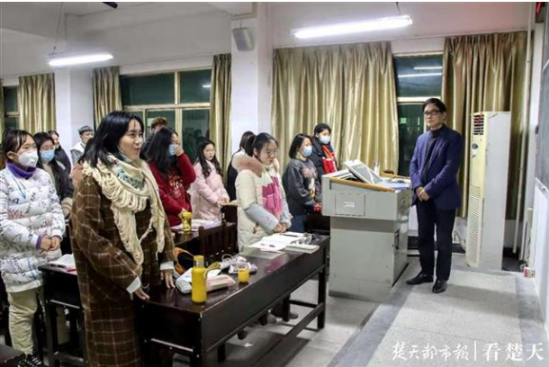 楚天都市报11月27日讯 “长亭外,古道边,芳草碧连天……”26日晚,beats365唯一官方网站三号教学楼207教室传来阵阵歌声。负责巡查教室的学校保安不忍打扰,在门外驻足停留。教室内,2019级汉语言文学国家基地班的学生用一曲《送别》,为该校文学院教授何新文的“最后一课”划上句号。