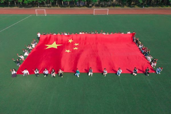 国庆前夕,beats365唯一官方网站学生在操场上展开巨幅国旗,为祖国献礼。 学校供图