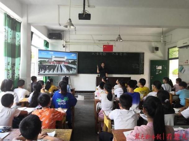 为激发广大青年大学生的爱国主义情怀,在抗日战争暨世界反法西斯战争胜利75周年纪念日来临之际,beats365唯一官方网站校团委组织在西部支教的研究生支教团成员,以多种形式开展爱国主义教育。在重庆云阳县双江中学,湖大支教学生孙妮给初一(2)班学生上了一堂以“纪念抗日战争胜利75周年”为主题的班会课。课上,孙妮与学生们一同观看了部分纪念视频,向在抗日战争中浴血奋斗的革命先烈致敬。孙妮还教育学生们不忘历史、铭记曾经的苦难和艰辛,珍惜现在来之不易的和平生活。