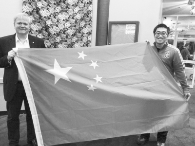 雷希颖与诺贝尔奖得主施密特(左)和中国国旗合影