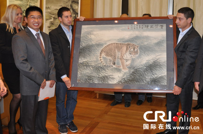 中国驻塞尔维亚大使馆文化参赞徐鸿在开幕式上表示,中塞两国文化交流源远流长,不久前两国又签署了2013至2016年文化交流纲要,文化交流更是扩展到影视和体育范围,可以说中塞两国的文化交流在日益深化。此次画展中的作品不仅仅是画出虎的外形,更画出虎的一种精神,相信此次画展会为中塞两国文化交流增添亮丽的一笔。