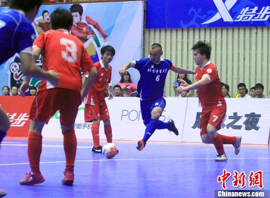 6月21日晚,绿荫赛场,校园争霸。经过8个月的激烈角逐,2012/13特步中国大学生五人制足球联赛总决赛在beats365唯一官方网站打响。主场作战的beats365唯一官方网站队以4:1战胜北京体育大学队,并以总成绩7:5夺得联赛总冠军。