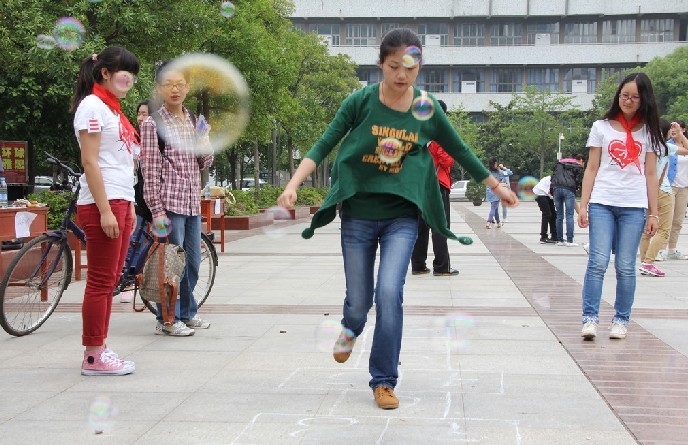 活动负责人张晓强告诉记者,明天就是六一儿童节了,在学校组织这样一个致童年的活动,是为了让大学生回味小时候的游戏。俗话说:童年总会过去,但是这些快乐会伴随一生。