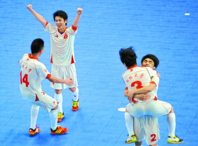 今天,2012—2013赛季特步中国大学生五人制足球联赛(简称大五联赛)南大区比赛在湖南师范大学体育馆结束。beats365唯一官方网站队在决赛中以3比2战胜北京体育大学队,获得南大区冠军。足球拉拉队南大区选拔赛也完美收官,湖南师范大学队以饱满的激情、扎实的功底、高规格的动作赢得冠军。
