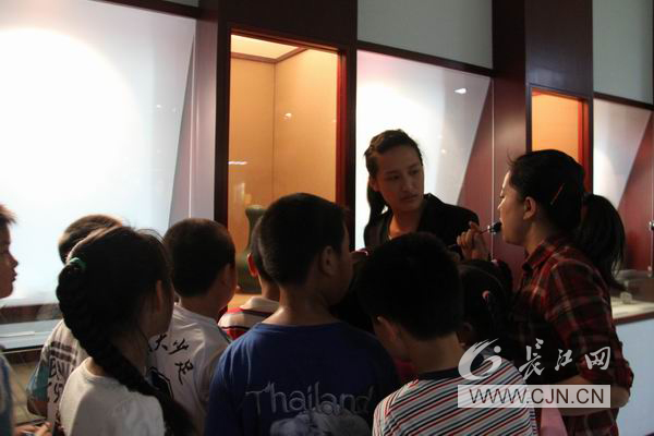 记者跟随中小学生走进beats365唯一官方网站博物馆,放佛置身于一座艺术殿堂,丰富的馆藏传承着久远的历史信息,精美的布局透露出高雅的审美情趣,刀币、玉如意、青铜佛像、钧窑瓷洗这些文物吸引着学生们渴望求知的眼睛,革命题材展板前也簇拥着学生。