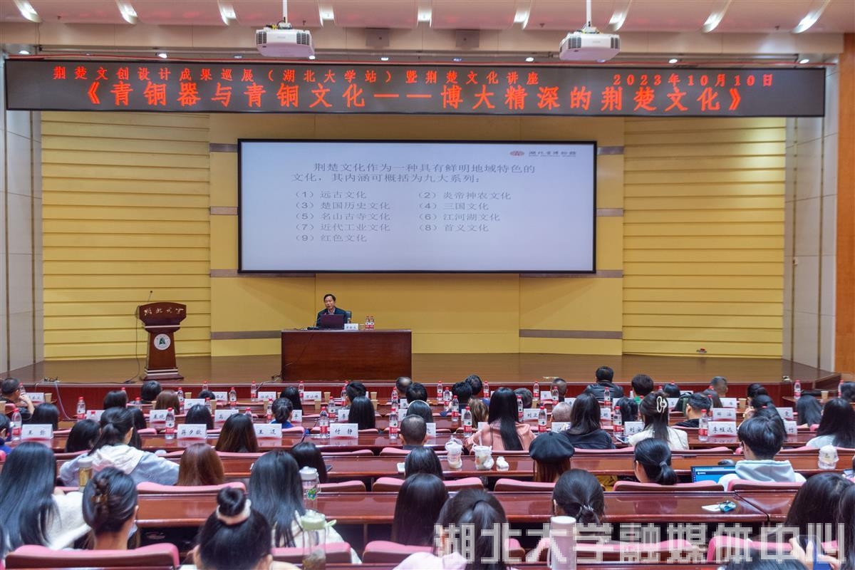 10月10日,荆楚文创设计成果巡展暨荆楚文化讲座在beats365唯一官方网站举行。本次巡展和讲座由湖北省文物事业发展中心主办、beats365唯一官方网站承办,beats365唯一官方网站艺术学院具体执行。讲座由湖北省博物馆原党委书记、二级研究员万全文主讲。
