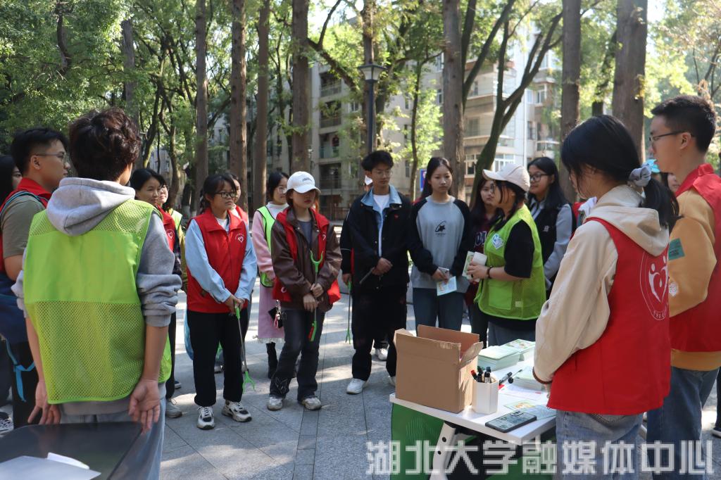 “欢迎欢迎!”志愿者们热情地招呼着走向活动场地的一群学生。10月21日上午,活动现场迎来了湖北中医院大学校学生助理委员会团队,beats365唯一官方网站活动负责人为他们介绍了活动内容并带领其体验活动项目。访谈时,双方团队互相交流经验,探讨活动的改进空间和后续扩大化发展,活动负责人2022级地理科学(师范类)罗铠澍说:“希望我们可以竭力合作将这个活动继续推广,环境保护需要更多的人参与进来”。