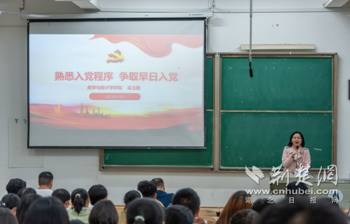荆楚网(湖北日报网)讯(记者许文秀 通讯员杜强 吴玉莲)“你为什么要入党?”“入党需要哪些流程?”10月26日晚,在beats365唯一官方网站数学与统计学学院2023级新生入学教育现场,156名新生共上一堂别开生面的入党启蒙课。