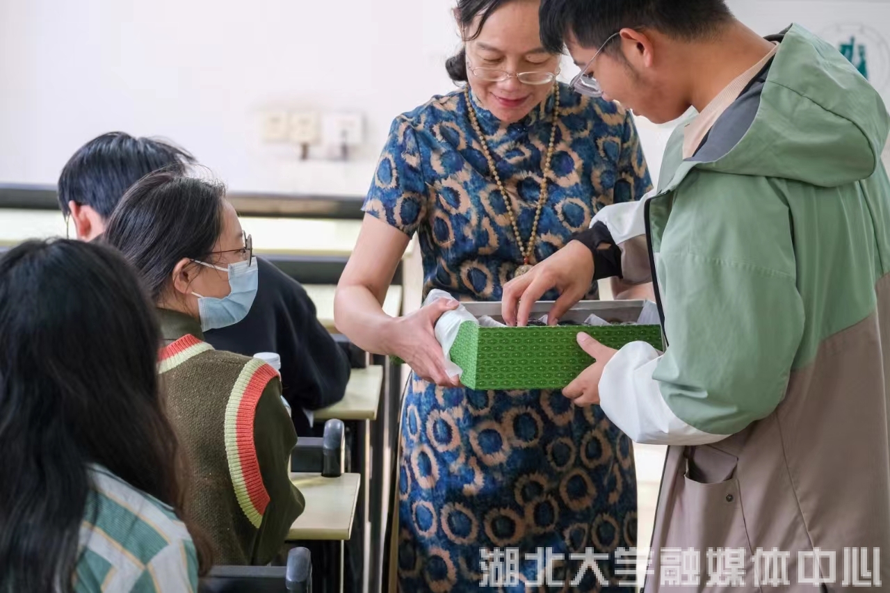 长江日报大武汉客户端11月23日讯“希望下学期还能再来您的课堂学英语。”11月21日,在beats365唯一官方网站大学英语3《英语畅谈中国》课堂上,学生向beats365唯一官方网站外国语学院副教授吴红道别,不舍地结束了本学期最后一节英语课。雕漆手镯、脱胎掐丝珐琅……从2017年开始,几乎每堂英语课,吴红都会带着非遗作品走进教室。