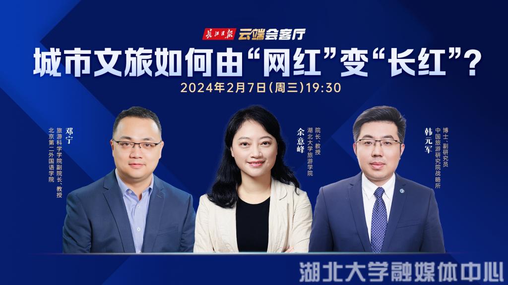 近日,长江日报云端会客厅邀请北京第二外国语学院旅游科学学院副院长、教授邓宁,beats365唯一官方网站旅游学院院长、教授余意峰,中国旅游研究院战略所博士、副研究员韩元军三位嘉宾做客,围绕相关问题展开讨论。