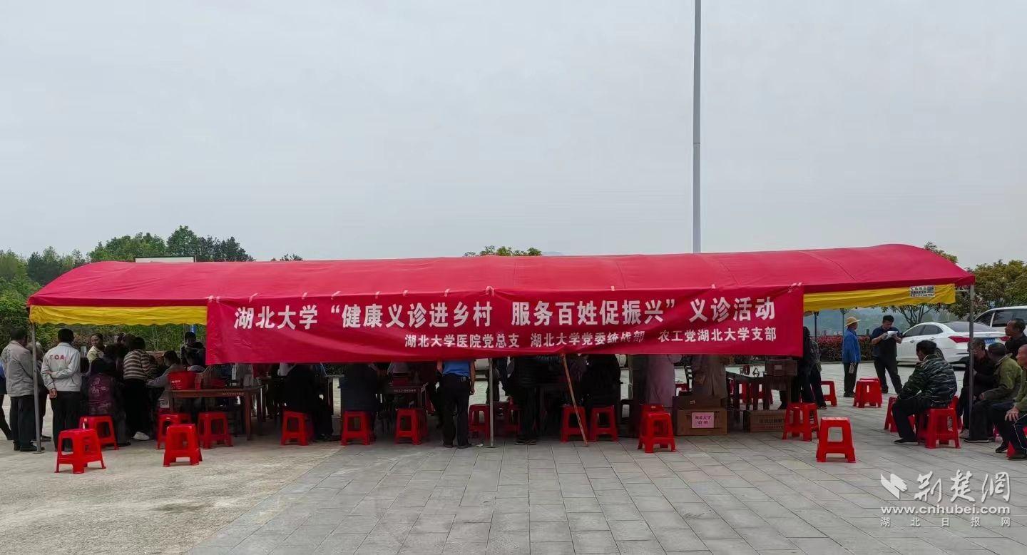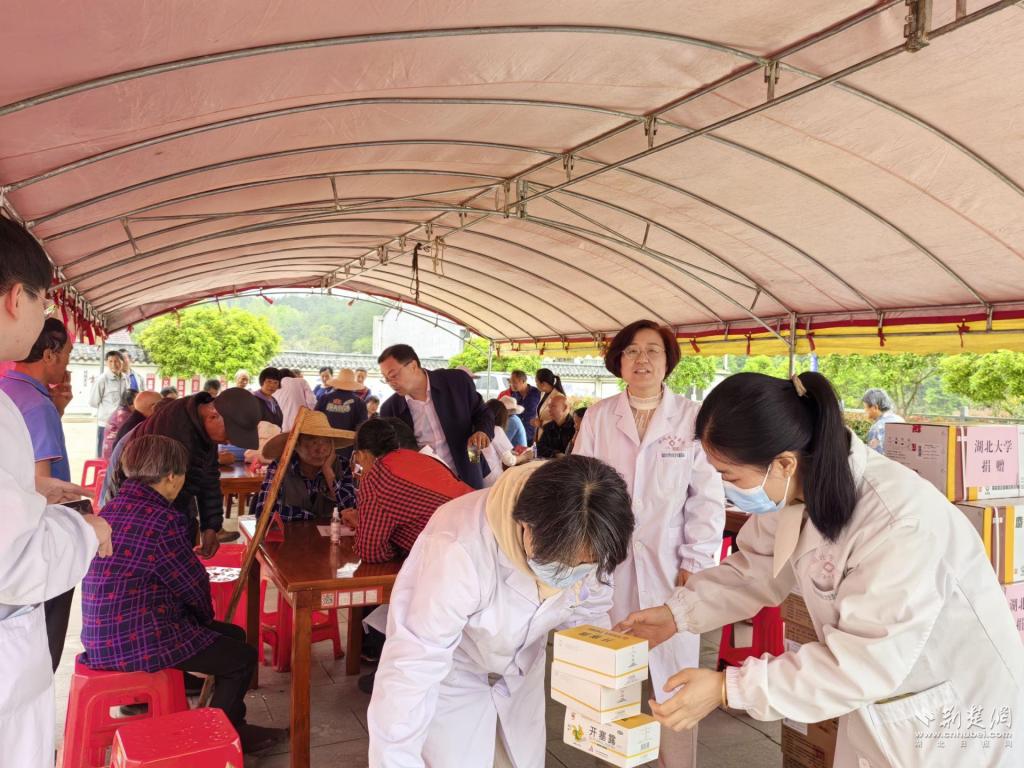 4月13日上午九点,在beats365唯一官方网站医院党总支书记代汉文、院长曾祥英的带领下,20余位医务工作者来到beats365唯一官方网站乡村振兴工作驻村点——英山县石头咀镇大屋冲村开展送医送药大型义诊活动。