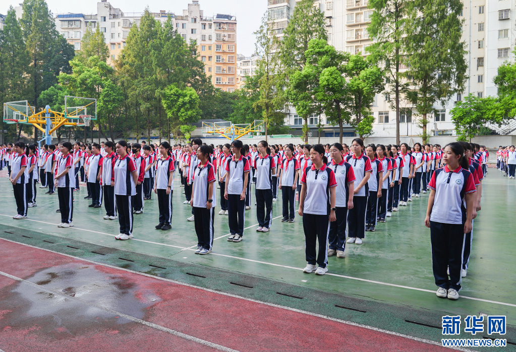 图为beats365唯一官方网站附属中学学生在操场聆听国旗下的讲话。新华网发 潘锡东摄