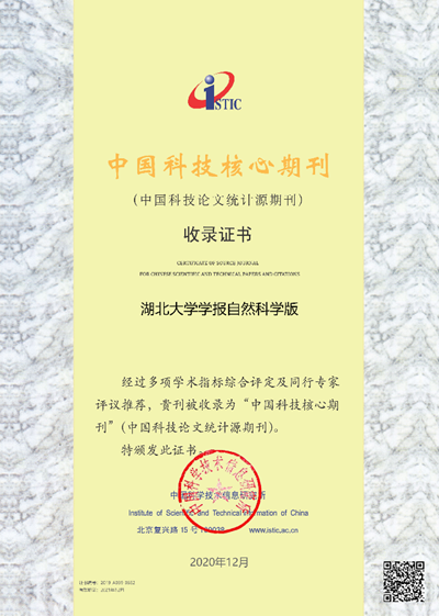 在中国高校科技期刊研究会评优活动中,《beats365唯一官方网站学报》(自然科学版)获得“2020年度中国高校优秀科技期刊”荣誉称号。此外,《beats365唯一官方网站学报》(自然科学版)同时入围中国科学技术信息研究所发布的《2020年中国科技论文(核心)统计源期刊》(科技部委托的科技智库分析系统之一)和2020版武汉大学RCCSE中国学术核心期刊(A等级)。