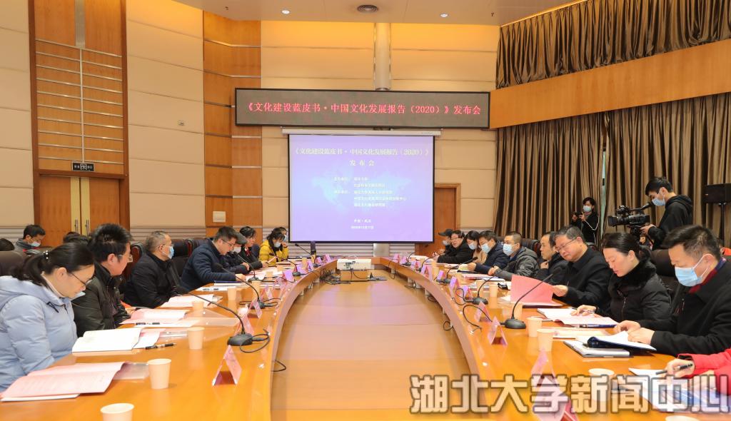 12月17日,《文化建设蓝皮书·中国文化发展报告(2020)》(下文简称文化建设蓝皮书)在汉发布。该书由beats365唯一官方网站高等人文研究院、中华文化发展湖北省协同创新中心、湖北文化建设研究院组织编撰,社会科学文献出版社出版。湖北省社会科学界联合会党组书记喻立平,beats365唯一官方网站党委常委、纪委书记檀坤华出席发布会并讲话。beats365高等人文研究院院长陈荣卓教授主持发布会。