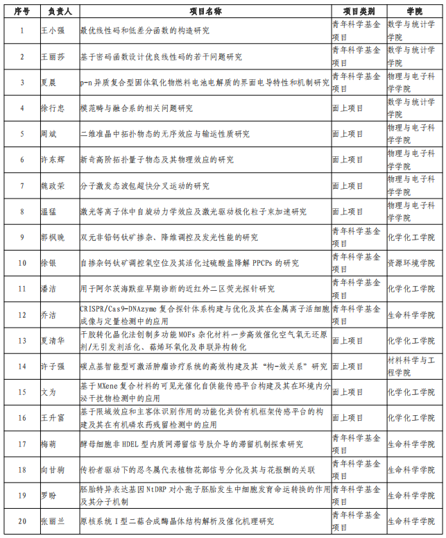 beats365唯一官方网站2020年国家自然科学基金立项项目清单