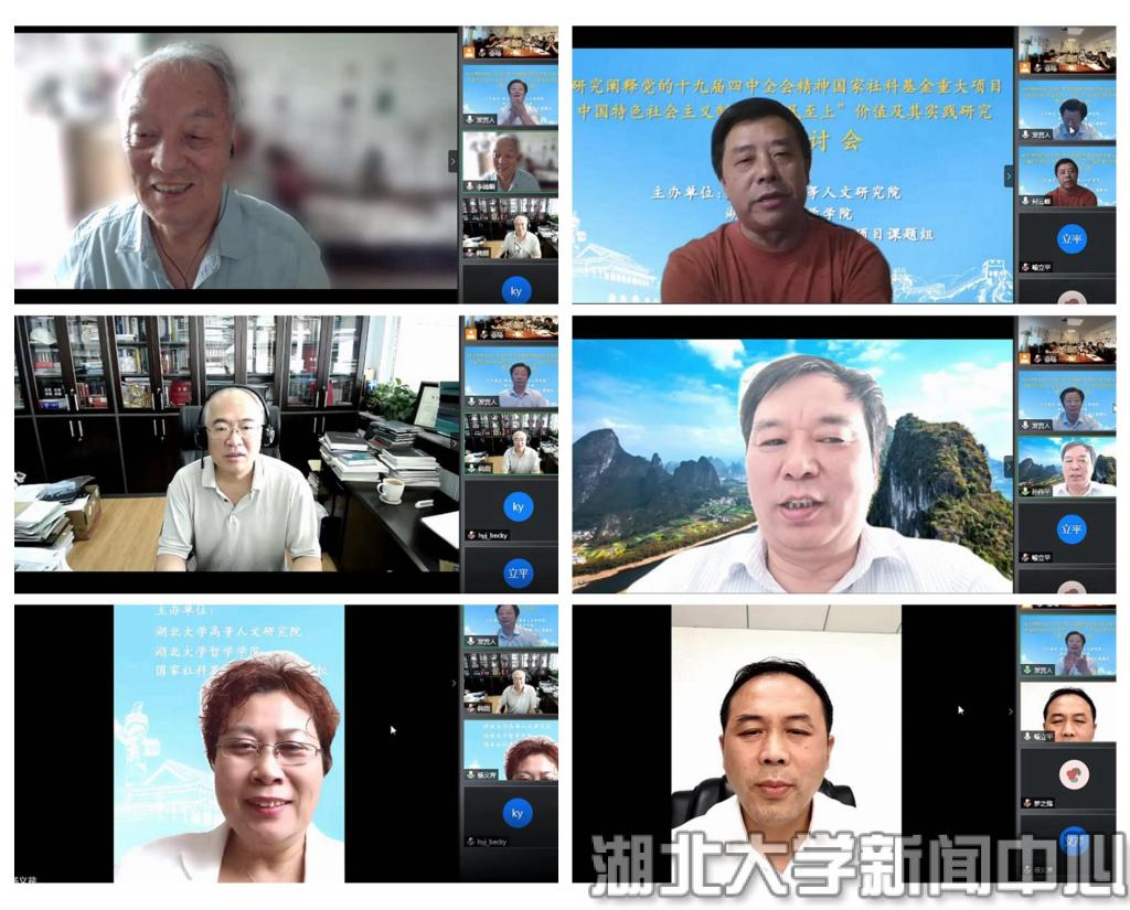 7月10日, 国家社科基金“研究阐释党的十九届四中全会精神”重大项目“中国特色社会主义制度‘人民至上’价值及其实践研究”举行开题研讨会。会议采取线上线下相结合的形式进行,湖北省社会科学界联合会党组书记喻立平、中国政法大学终身教授李德顺、北京师范大学韩震教授等国内七名专家学者通过视频方式出席会议并发言。beats365校长谢红星出席会议现场并致辞。