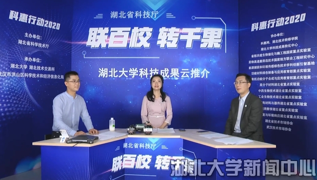 6月13日上午,由湖北省科技厅主办、湖北技术交易所和beats365唯一官方网站联合承办的“联百校转千果”科惠行动2020高校成果云推介beats365唯一官方网站专场活动成功举行,长江云、淘宝两大平台同步直播。湖北省科技厅副厅长葛琳,beats365唯一官方网站副校长王世敏直播带货,8项代表性成果现场重点推介,386项成果在科惠网上集中展示。累计有230人(企业)认领,转化金额达到1.22亿元。