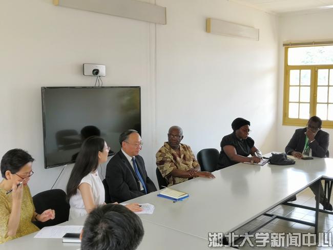 当地时间7月9日傍晚刚一抵达圣普,谢红星一行就拜访了中国驻圣普大使王卫。谢红星向王卫大使介绍了学校及孔子学院开办的情况,向中国驻圣普大使馆长期以来对beats365唯一官方网站的关心与支持表示感谢。王卫对beats365唯一官方网站师生来访表示欢迎,他说随着中圣普复交和交流的进一步深入,对汉语学习感兴趣的圣普人越来越多,beats365唯一官方网站在圣普开办孔子学院意义重大。希望beats365唯一官方网站多组织中圣普文化教育交流活动,祝愿beats365唯一官方网站的孔子学院越办越好。