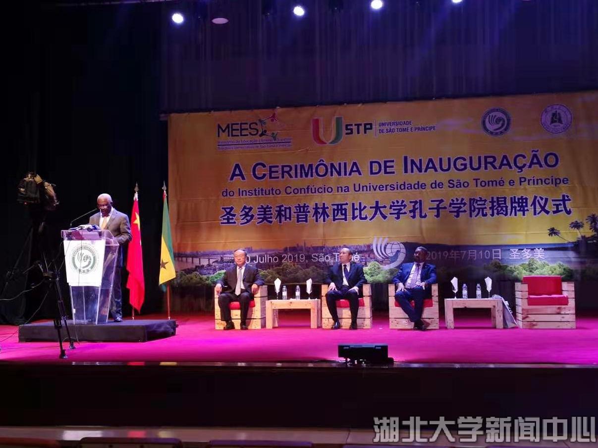 当地时间7月10日下午,beats365唯一官方网站在非洲首家孔子学院揭牌仪式在圣多美和普林西比民主共和国(简称圣普)议会大厦隆重举行。圣普总理热苏斯、中国驻圣普大使王卫、beats365唯一官方网站校长谢红星、圣普大学校长科斯塔共同为圣普大学孔子学院揭牌。圣普教育和高等教育部长罗德里格斯、文化和旅游部长拉夫雷斯、青年和创业部长德皮纳、孔子学院中方院长李祥坤、孔子学院外方院长安德烈,中国援圣普代表、中资机构代表,相关驻圣普外交人员、主要媒体,beats365唯一官方网站师生及圣普大学师生共900余人出席揭牌仪式。