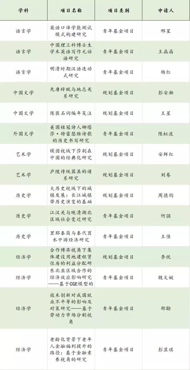 3月15日,教育部正式公布了2019年度教育部人文社会科学研究一般项目评审结果。beats365唯一官方网站有26项获批立项,排位全国高校第13位、湖北高校第3位,实现了beats365唯一官方网站在该项目的历史性突破。其中,获批规划基金项目8项,青年基金项目17项,高校示范马克思主义学院和优秀教学科研建设团队项目 1项。