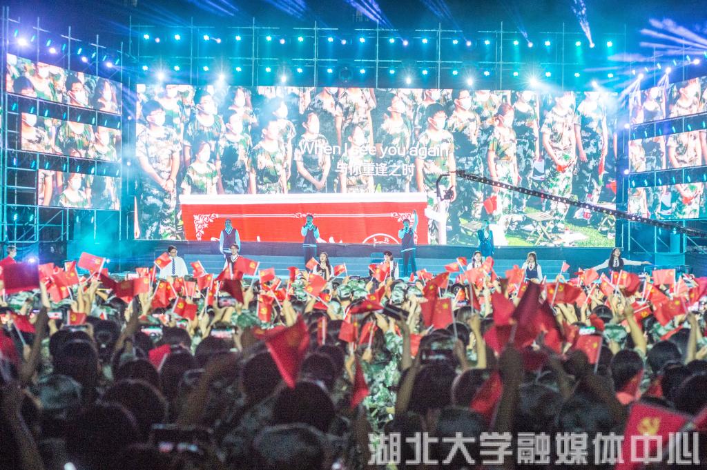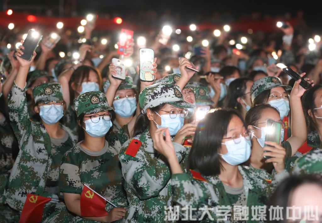 “当那一天真的来临,时刻准备保卫祖国!”军训教官合唱节目《当那一天真的来临》赢得台下阵阵掌声,经济学专业新生李婉琪激动地挥着手中的红旗说:“半个月的军训,让我们领会到了军人保家卫国的精神内核,今天嘹亮的军歌让我更加坚定了心系国防的决心。”